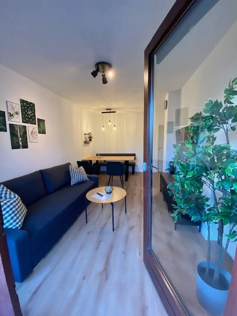 Im Wohn- und Essbereich können Sie die Couch zu einer vollwertigen Schlafstätte umwandeln. Der Esstisch bietet sechs Personen Platz und läd zum Verweilen ein. Hier befindet sich auch der Zugang zur Terrasse.